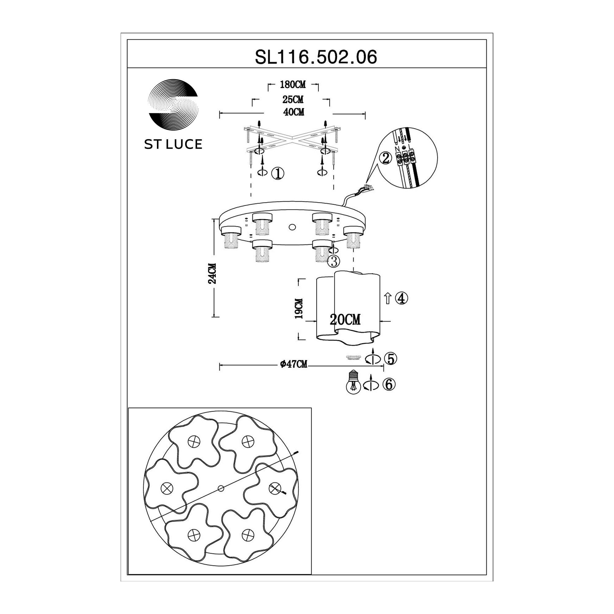 | Альтернативное название | SL116.502.06 Люстра потолочная ST-Luce Серебристый/Белый E27 6*60W ONDE |