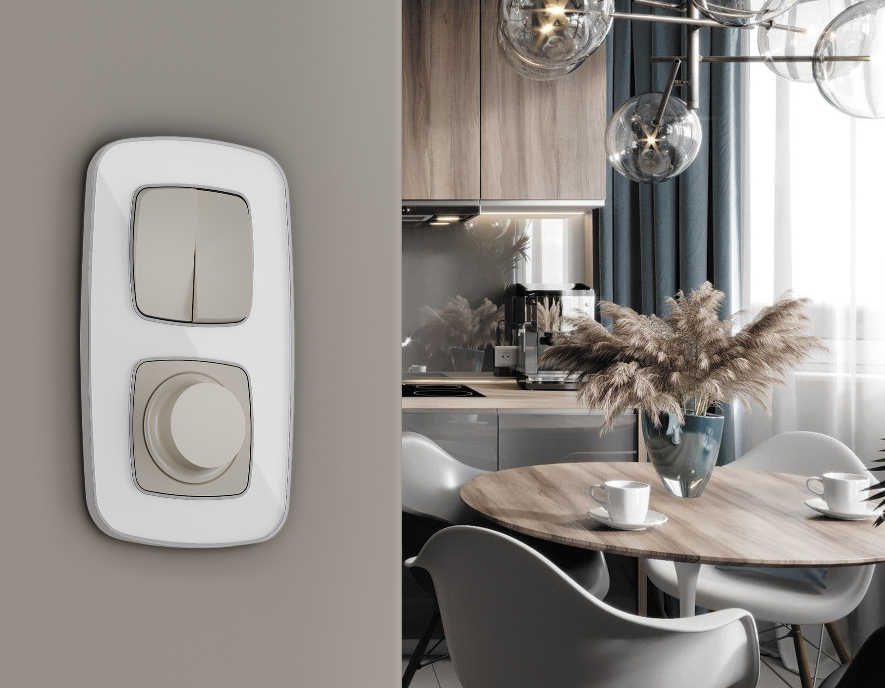 | Альтернативное название | Комплект механизма 2-клавишного перекрестного выключателя 10A-250V OMEGA MO363030 Серо-бежевый матовый QUANT |
